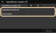 Επιλέξτε <On> στην <Αρχειοθέτηση εγγράφου ΑΠ>.