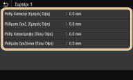 Μπορείτε να χρησιμοποιήσετε την επιλογή <Ρυθμίσεις λειτουργίας> στο μενού ρυθμίσεων του πίνακα λειτουργίας για να ρυθμίσετε τη θέση εκτύπωσης για όλες τις εργασίες εκτύπωσης, ανεξάρτητα από την πηγή χαρτιού. Η θέση εκτύπωσης μπορεί να ρυθμιστεί σε βήματα του 0,5 mm μεταξύ του -50,0 mm και του +50,0 mm. <Μετατόπιση Μικρής Διάστασης/Μετατόπιση Μεγάλης Διάστασης>