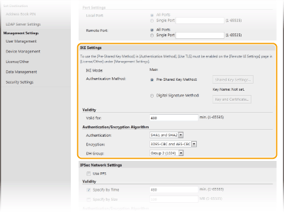 Καθορίστε τις ρυθμίσεις [Valid for] και [Authentication]/[Encryption]/[DH Group].