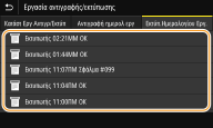 Όταν η ρύθμιση <Εμφάν.Ημερολογίου Εργ.> έχει οριστεί σε <Off>, δεν μπορείτε να ελέγξετε τα ημερολόγια εργασιών εκτύπωσης. <Εμφάν.Ημερολογίου Εργ.>