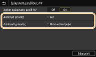 Επιλέξτε <On> στη ρύθμιση <Χρήση αλλαγής σε Αυτ. ΛΨ>
