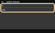 | | Kun teet useita kopioita monisivuisista alkuperäisistä, valitse <Lajittelu>-asetukseksi <Kyllä>, niin kopiot lajitellaan sarjoina sivujärjestyksessä. Tämä toiminto on kätevä esimerkiksi valmisteltaessa kokouksessa tai esityksessä jaettavaa materiaalia. |