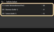 Voit tarkistaa laitteella tulostettujen sivujen kokonaismäärän. Näihin kokonaismääriin sisältyvät faksit, raportit ja luettelot sekä kopiot ja tietokoneesta tulostetut tiedot.