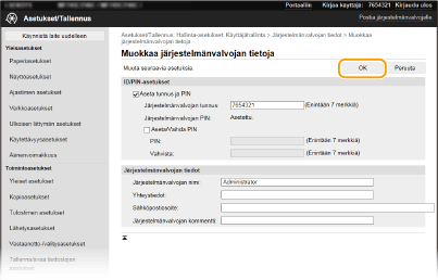 Eräitä asetuksia voidaan muuttaa vain, kun olet kirjautunut järjestelmänvalvojatilassa. Eräät asetukset saattavat vaatia toimenpiteitä, jotka poikkeavat tässä kuvatuista. |