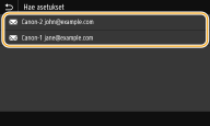 ![]() | Voit valita vastaanottajan aiemmista vastaanottajista. Kun määrität aiemmin käytetyn vastaanottajan, laite asettaa samat skannausasetukset, esimerkiksi tummuuden, joita käytit viimeksi lähettäessäsi asiakirjoja tälle vastaanottajalle. |