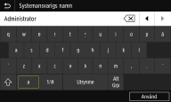 Vissa tangenter på USB-tangentbordet, som tangenterna [Backspace], [Home] och [End], kan inte användas. Om tangenter som inte kan användas trycks ner anges eller ändras inget. För att radera text trycker du på tangenten [Delete]. Om du trycker på tangenten [RETURN/ENTER] avslutas textinmatningen på samma sätt som om du väljer <Använd>. Du kan ange typen av tangentbordslayout (för amerikansk layout eller brittisk layout). <Engelsk tangentbordslayout> Du kan koppla från USB-tangentbordet från enheten när som helst. Ingen speciell åtgärd krävs för att koppla från. Beroende på visningsspråket kan det hända att du inte kan ange vissa tecken ordentligt. Det finns typer av USB-tangentbord som inte går att använda. |