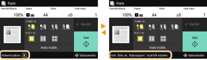 Meddelanden visas på skärmen i situationer som när papperet eller tonerpatronen tar slut. Mer information finns i "Felsökning (FAQ)" på webbsidan med onlinehandböcker.