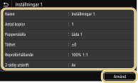 När du har återupptagit inställningskombinationen kan du även ändra kopieringsinställningarna om det behövs. |