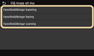 Du kan lägga till snabbvalsknappar på skärmen Hem för funktioner som du ofta använder, t.ex. <Kopia>, <Fax> och <Scanna>. Du kan exempelvis utföra uppgifter snabbare och effektivare genom att tilldela en sekvens av inställningar (t.ex. "Skanna båda sidorna av originalet, spara dem som en högkomprimerad PDF-fil och skicka filen via e-post") till en enda knapp.