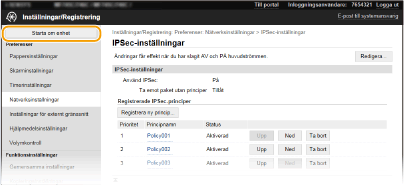 Klicka på [Inställningar/Registrering] på portalsidan. Fjärranvändargränssnittets skärm