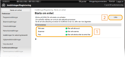 Kontrollera i [Enhetsstatus] att inga funktioner körs och klicka sedan på [Utför].