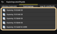 Om <Visa jobblogg> är inställt på <Av> kan du inte kontrollera kopieringsloggar. <Visa jobblogg>