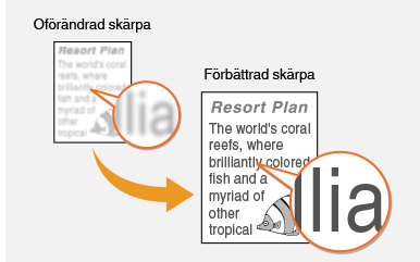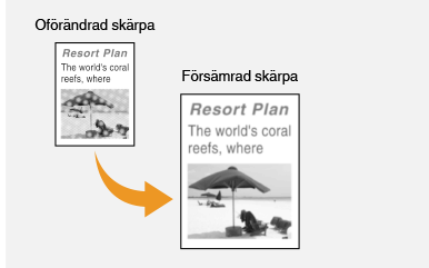 Du kan justera den kopierade bildens skärpa. Öka skärpan för att skärpa suddig text och suddiga linjer, och minska skärpan för att förbättra tidskriftsfoton.