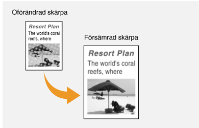 ![]() | Du kan justera bildens skärpa. Öka skärpan för att få tydligare text och linjer, och minska skärpan för att förbättra tidskriftsfoton. Justera skärpan |