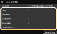 ![]() | Om kontoret har en LDAP-server installerad kan du ange mottagare med hjälp av användarinformation på servern. Öppna LDAP-servern från enheten, sök efter lämplig användarinformation och ange den sedan som mottagare. |