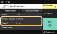 Om du väljer mottagare i <Adressbok> på skärmen Hem kan skärmen Grundläggande funktioner för att skicka I-fax öppnas om mottagaren behöver specificeras ytterligare. |