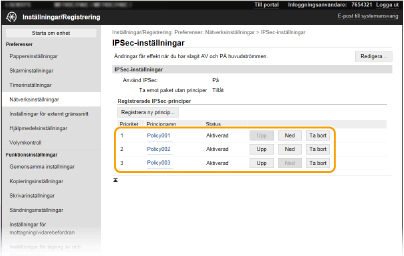 Ordna principerna som visas under [Registrerade IPSec-principer].