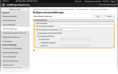 Markera kryssrutan [Använd proxy] och ange nödvändiga inställningar.