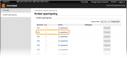 Du kan ta bort en registrerad mottagare genom att klicka på motsvarande knapp för [Ta bort].