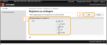 Välj vilken typ av mottagare som ska registreras och klicka sedan på [OK].