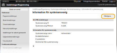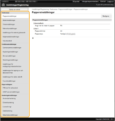Du kan ändra enhetens olika inställningar från Fjärranvändargränssnittet. De flesta inställningar kan också ställas in på enheten, men vissa kan bara ställas in från Fjärranvändargränssnittet. I det här avsnittet beskrivs grundläggande åtgärder för att ändra enhetens inställningar från Fjärranvändargränssnittet.