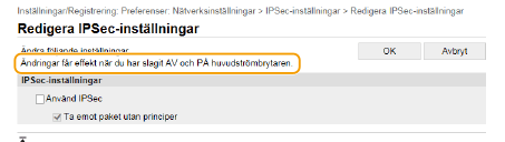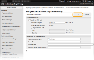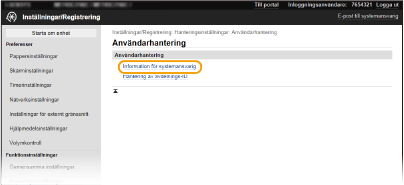 Vissa inställningar kan endast ändras när du är inloggad i systemhanteringsläge.