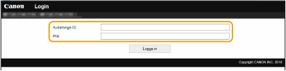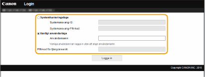 Ange systemansvarig-ID och PIN-kod. [Vanligt användarläge]