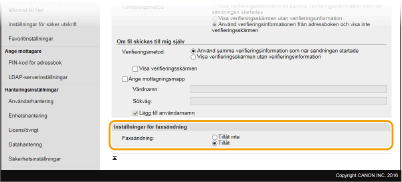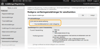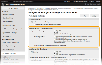 [Verifieringsinställningar för sändfunktion].