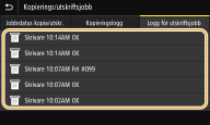 När <Visa jobblogg> är inställt på <Av> kan du inte kontrollera utskriftsloggarna. <Visa jobblogg> |