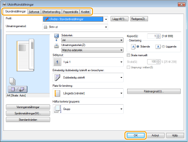 Ange de utskriftsinställningar som behövs och klicka på [OK].