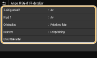 ![]() Välj <Avsluta> när du vill ange andra utskriftsinställningar. |