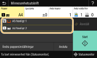![]() När cassette feeding module (tillval) har installerats visas även dess papperslåda. Välj <Avsluta> när du vill ange andra utskriftsinställningar. |