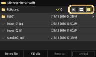 2 | Välj kriterier för filsortering. ![]() Om du väljer <Datum/tid (stigande)> eller <Datum/tid (fallande)> sorteras filerna baserat på ändringsdatum och tid. |