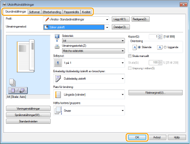 Ange de utskriftsinställningar som behövs och klicka på [OK].