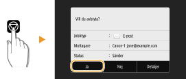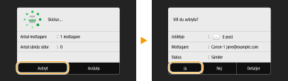 <Statusmonitor> <Sändningsjobb> Välj dokumentet på fliken <Status sändningsjobb>   <Avbryt> <Ja>