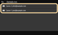 ![]() | Du kan välja en mottagare bland de senaste mottagarna. Om du anger en tidigare använd mottagare ställs samma skanningsinställningar in som du använde senaste gången du skickade dokument till samma mottagare. |