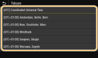 Välj <Preferenser> <Inst. timer/energi> <Datum-/tidsinställningar> <Tidszon>.
