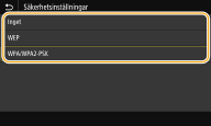 Om du inte behöver ange säkerhetsinställningar väljer du <Inget>.