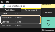 Na obrazovce základních funkcí skenování vyberte možnost <I-fax>. Obrazovka základních funkcí skenování