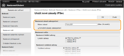 V textovém poli [Název zásad] zadejte formou alfanumerických znaků jméno, pomocí kterého bude možné zásadu identifikovat.