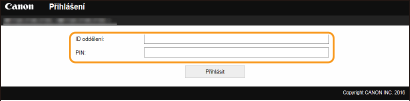 Prostřednictvím Vzdáleného uživatelského rozhraní můžete provádět všechny operace a nastavení. Zadejte příslušné ID do pole [ID správce systému] a PIN do pole [PIN správce systému].