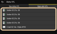 <OK> se zobrazí, když byl dokument odeslán úspěšně, a <Chyba> se zobrazí, když se dokument nepodařilo odeslat, protože byl zrušen nebo došlo k chybě.