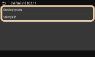 Když se připojujete k bezdrátové síti LAN a na směrovači je nastaveno ověřování pomocí sdíleného klíče, v zařízení dojde k chybě ověřování. V takovém případě zařízení automaticky změní nastavení na možnost <Sdílený klíč> a pokusí se obnovit připojení.