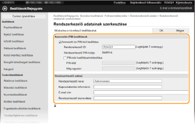 Néhány beállítás csak akkor módosítható, ha rendszerkezelői módban jelentkezik be.