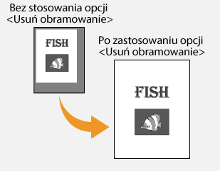 W przypadku kopiowania oryginałów, które mają mniejszy format niż papier używany do wydruku, wokół krawędzi skopiowanego obrazu mogą pojawić się linie ramki. Podczas kopiowania sąsiadujących ze sobą stron grubej książki mogą pojawić się ciemne obramowania. Opcja <Usuń obramowanie> pozwala usunąć linie ramki oraz ciemne obramowania.