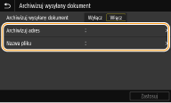 Jeśli nie używasz funkcji archiwizowania wysłanych dokumentów, wybierz <Wyłącz>.