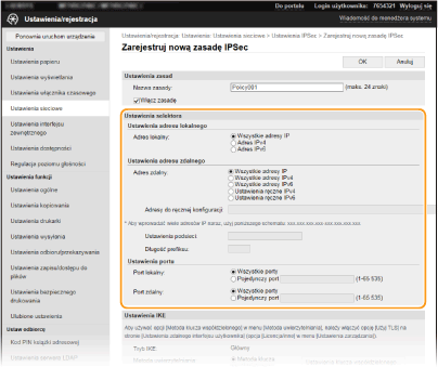 Wybierz tę opcję, aby używać protokołu IPSec w przypadku wszystkich pakietów IP wysyłanych na adres IPv4 urządzenia lub z tego adresu.