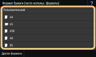 Если приведенный выше экран не отображается при загрузке бумагиЕсли вы всегда загружаете в универсальный лоток бумагу одинакового размера, можно пропустить операции по определению бумаги, выполнив регистрацию размера и типа бумаги в качестве параметра по умолчанию. Однако если зарегистрирован параметр по умолчанию, приведенный выше экран не отображается. Чтобы отобразить этот экран, выберите <Указать при загрузке бумаги> (Регистрация параметров бумаги по умолчанию для универсального лотка). |