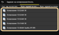 Если для параметра <Отображение журн. заданий> задано значение <Выключить>, проверка журнала заданий копирования невозможна. <Отображение журнала заданий> |