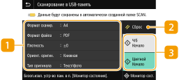 Экран основных функций для отправки электронной почты/отправки интернет-факса/сохранения файла